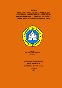 Christopher, Victor (2024) PENGARUH HARGA, KUALITAS PRODUK, DAN KUALITAS PELAYANAN TERHADAP KEPUTUSAN PEMBELIAN PRODUK CCTV MEREK HIKVISION DI CV EKA MEDIA SOLUSINDO SURABAYA TIMUR. Undergraduate thesis, Universitas Katolik Darma Cendika Fakultas Ekonomi.