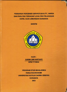 HARTANTI, SUKMA DWI (2023) PENGARUH PERCEIVED SERVICE QUALITY , HARGA DAN FASILITAS TERHADAP LOYALITAS PELANGGAN HOTEL CLEO JEMURSARI SURABAYA. Undergraduate thesis, Universitas Katolik Darma Cendika Fakultas Ekonomi.