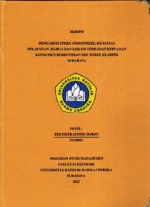 HARJO, TEGUH PRATOMO (2023) PENGARUH STORE ATMOSPHERE, KUALITAS PELAYANAN, HARGA DAN LOKASI TERHADAP KEPUASAN KONSUMEN DI RESTORAN MIE TOREE KLAMPIS SURABAYA. Undergraduate thesis, Universitas Katolik Darma Cendika Fakultas Ekonomi.