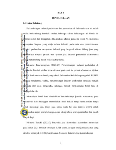 Indonesia is an advanced country in the tourism and hospitality industry. The hospitality industry is a service industry that sells products and services. . HARRIS-POP! Hotels & Conventions Gubeng Surabaya is the first combo hotel that combines two hotels with different star classifications. The purpose of this study was to determine whether product quality, word of mouth and service