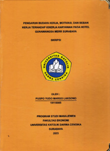 LAKSONO, PUSPO YUDO MARGO (2023) PENGARUH BUDAYA KERJA, MOTIVASI, DAN BEBAN KERJA TERHADAP KINERJA KARYAWAN PADA HOTEL GUNAWANGSA MERR SURABAYA. Undergraduate thesis, Universitas Katolik Darma Cendika Fakultas Ekonomi.