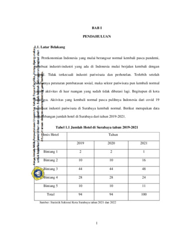 recovery from Covid 19 have made the tourism industry in Surabaya return to normal. With an increase in the number of hotels in Indonesia, jobs for the tourism industry will