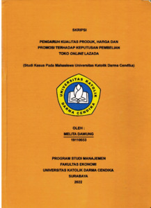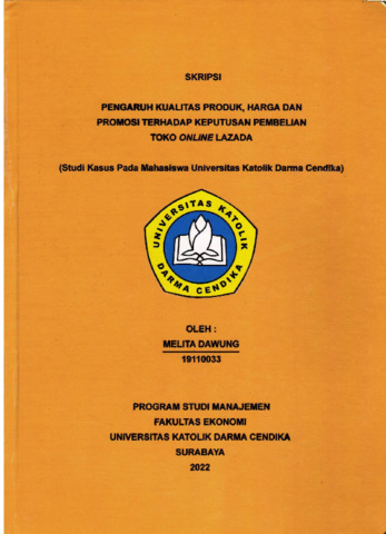 DAWUNG, MELITA (2023) PENGARUH KUALITAS PRODUK, HARGA DAN PROMOSI TERHADAP KEPUTUSAN PEMBELIAN TOKO ONLINE LAZADA (Studi Kasus Pada Mahasiswa Universitas Katolik Darma Cendika). Undergraduate thesis, Universitas Katolik Darma Cendika Fakultas Ekonomi.