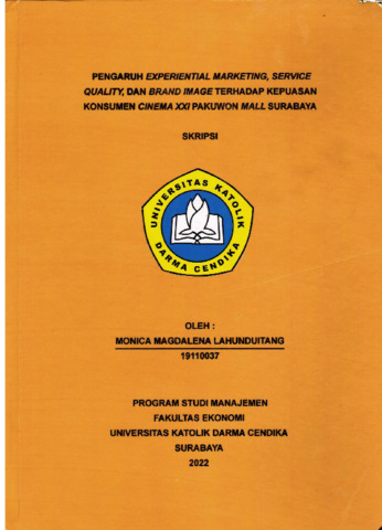 LAHUNDUITANG, MONICA MAGDALENA (2023) PENGARUH EXPERIENTIAL MARKETING, SERVICE QUALITY, DAN BRAND IMAGE TERHADAP KEPUASAN KONSUMEN CINEMA XXI PAKUWON MALL SURABAYA. Undergraduate thesis, Universitas Katolik Darma Cendika Fakultas Ekonomi.