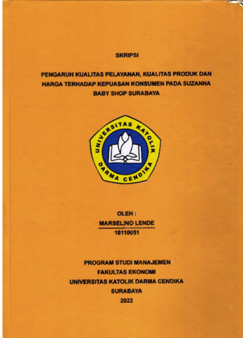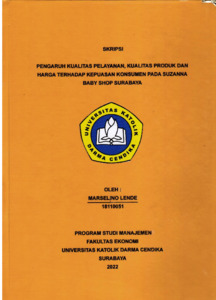 Lende, Marselino (2023) PENGARUH KUALITAS PELAYANAN, KUALITAS PRODUK DAN HARGA TERHADAP KEPUASAN KONSUMEN PADA SUZANNA BABY SHOP SURABAYA. Undergraduate thesis, Universitas Katolik Darma Cendika Fakultas Ekonomi.