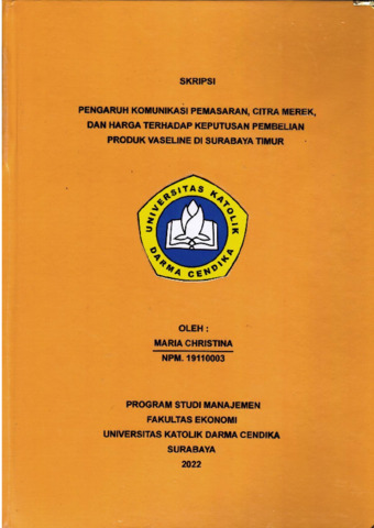 ADRIYANI, MARIA VALENCIA FEDERICA (2023) PENGARUH CITRA MERK, HARGA DAN PROMOSI TERHADAP KEPUTUSAN KONSUMEN MENGINAP DI HOTEL SHANGRI-LA SURABAYA. Undergraduate thesis, Universitas Katolik Darma Cendika Fakultas Ekonomi.