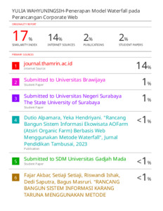HASIL SIMILARITY-YULIA WAHYUNINGSIH-PENERAPAN MODEL WATERFALL PADA PERANCANGAN CORPORATE WEB.pdf Download (2MB) | Preview |