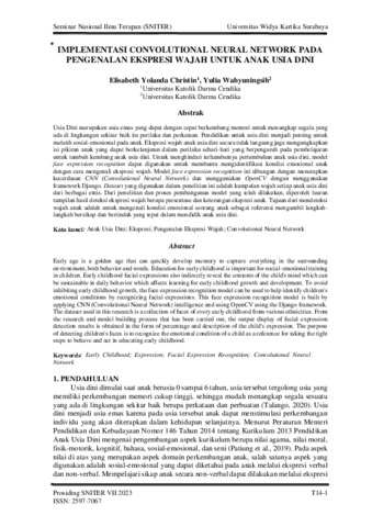 | Uncontrolled Keywords: | Anak Usia Dini, Ekspresi, Pengenalan Ekspresi Wajah, Convolutional Neural Network |