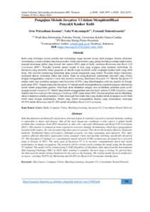 meskipun akurat, memakan waktu dan mahal. Studi ini mengeksplorasi pendekatan alternatif yang efisien dengan menggunakan computer vision dan machine learning, khususnya Inception V3. Metode Inception V3 adalah salah satu arsitektur jaringan saraf konvolusi (CNN) yang dikembangkan oleh tim peneliti di Google pada tahun 2015. Tujuan utama dari Inception V3 adalah untuk meningkatkan kecepatan komputasi dan kinerja model dalam pengenalan gambar. Penelitian akan dilakukan dengan cara melakukan pelatihan pada model dengan metode Inception V3. Model akan dilatih menggunakan data foto kulit sebesar 9,1GB (Gigabyte) yang