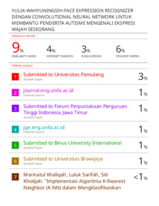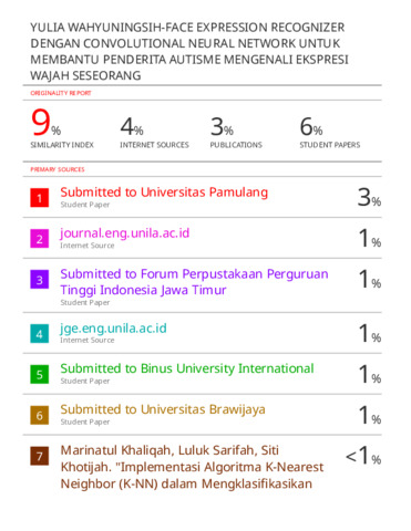 HASIL SIMILARITY-YULIA WAHYUNINGSIH-FACE EXPRESSION RECOGNIZER DENGAN CONVOLUTION NEURAL NETWORK.pdf Download (2MB) | Preview |