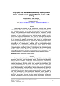 Dalton, Thomas and Hartanto, Andre (2023) Perancangan User Experience Aplikasi Mobile Marbelin Sebagai Media Pembelajaran Anak - Anak Menggunakan Metode Design Thinking. Prosiding Seminar Nasional Amikom Surakarta, 1. pp. 331-337. ISSN 3031-5581 (online)
