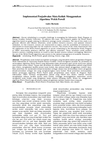 Hartanto, Andre Implementasi Penjadwalan Mata Kuliah Menggunakan Algoritma Welch Powell. Implementasi Penjadwalan Mata Kuliah Menggunakan Algoritma Welch Powell.