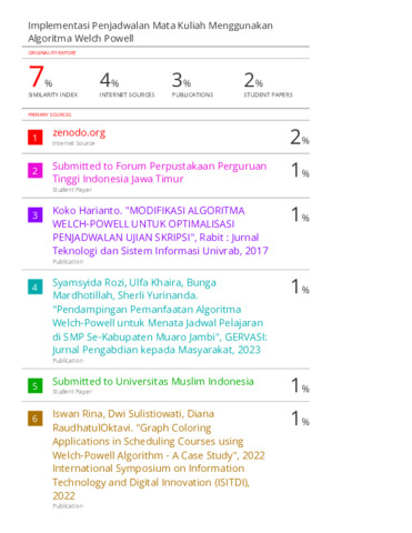 HASIL SIMILARITY-ANDRE HARTANTO-IMPLEMENTASI PENJADWALAN MATA KULIAH MENGGUNAKAN ALGORITMA WELCH POWELL.pdf Download (2MB) | Preview |