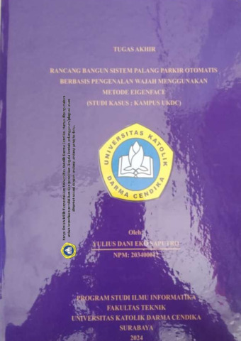 Saputro, Yulius Dani Eko (2024) Rancang Bangun Sistem Palang Parkir Otomatis Berbasis Pengenalan Wajah Menggunakan Metode Eigenface (Studi Kasus: Kampus UKDC). Undergraduate thesis, Universitas Katolik Darma Cendika Fakultas Teknik.