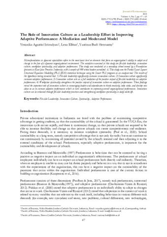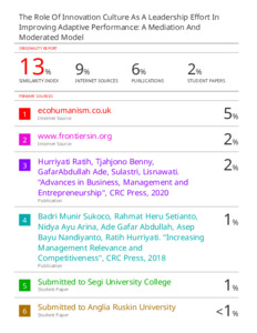 Srimulyani, Veronika Agustini and Ellitan, Lena and Hermanto, Yustinus Budi (2025) The Role of Innovation Culture as a Leadership Effort in Improving Adaptive Performance: A Mediation and Moderated Model. Journal of Ecohumanism, 4 (2). pp. 47-65. ISSN 2752-6801