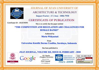 Widyastuti, Maria and Hermanto, Y. Budi and Lusy, Lusy (2020) THE COMPETITION AND REGULATION ARE CHALLENGES FOR RURALS BANKS. Journal of Xi'an University of Architecture & Technology, XII (II). pp. 873-882. ISSN 1006-7930
