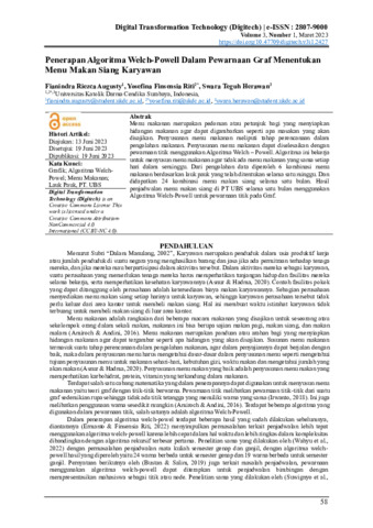 1. Penerapan Algoritma Welch-Powell Dalam Pewarnaan Graf Menentukan Menu Makan Siang Karyawan.pdf Download (283kB) | Preview |