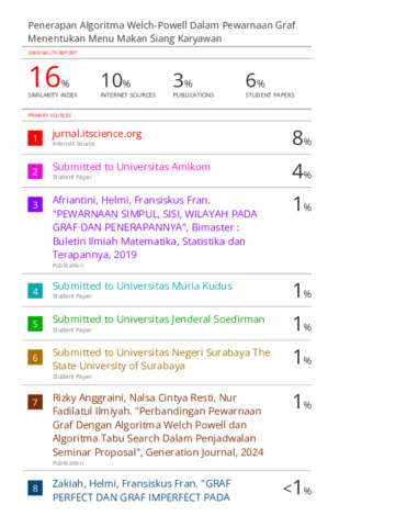 11. HASIL SIMILARITY-PENERAPAN ALGORITMA WELCH-POWELL DALAM PEWARNAAN GRAF MENENTUKAN MENU MAKAN SIANG KARYAWAN.pdf Download (2MB) | Preview |