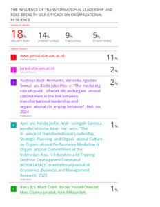 Amelia, Luna and Purbiyati, Yuliana Sri (2024) THE INFLUENCE OF TRANSFORMATIONAL LEADERSHIP AND ROLE BREADTH SELF-EFFICACY ON ORGANIZATIONAL RESILIENCE. International Journal of Economics, Business, and Accounting Research (IJEBAR), 8 (4). pp. 1228-1242. ISSN E-ISSN: 2614-1280 P-ISSN 2622-4771