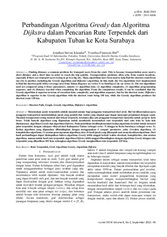 Iskandar, Jonathan Steven and Riti, Yosefina Finsensia (2022) Perbandingan Algoritma Greedy dan Algoritma Dijkstra dalam Pencarian Rute Terpendek dari Kabupaten Tuban ke Kota Surabaya. Petik: Jurnal Pendidikan Teknologi Informasi dan Komunikasi, 8 (2). pp. 1-11. ISSN 2640-7363