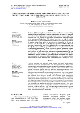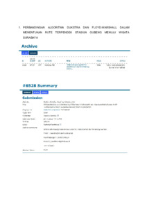 contohnya dalam hal penggunaan bahan bakar dan waktu tempuh. Penyelesaian tersebut dapat diraih dengan penerapan salah satu komponen dalam graf yaitu algoritma. Jurnal ini ditulis guna membantu masyarakat terlebih para turis dalam memberikan informasi terkait rute yang paling efisien dari titik awal stasiun menuju ke berbagai destinasi wisata kota Surabaya dengan penerapan Algoritma Dijkstra dan Algoritma Floyd-Warshall. Teknik yang digunakan dalam perhitungan