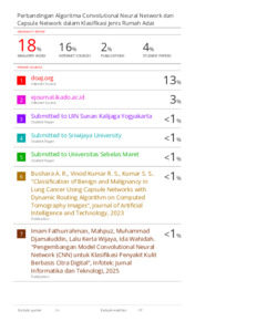 1. HASIL SIMILARITY-YOSEFINA F RITI-PERBANDINGAN ALGORITMA CONVOLUTIONAL NEURAL NETWORK DAN CAPSULE NETWORK.pdf Download (4MB) | Preview |