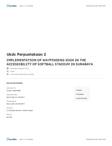 HASIL SIMILARITY-HERISTAMA ANUGERAH PUTRA-IMPLEMENTATION OF WAYFINDING SIGN IN THE ACCESSIBILITY.pdf Download (729kB) | Preview |