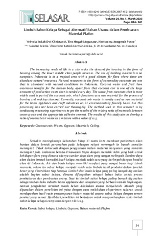 Christanti, Vebyola Indah Dwi and Arganata, Tito Mugabi and Putra, Heristama Anugerah (2023) Limbah Sabut Kelapa Sebagai Alternatif Bahan Utama dalam Pembuatan Material Plafon. SELASAR, 20 (1). pp. 34-41. ISSN P: 1693-8240 | E: 2987-4521