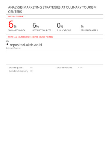 HASIL SIMILARITY-Y BUDI HERMANTO-ANALYSIS MARKETING STRATEGIES AT CULINARY TOURISM CENTERS.pdf Download (635kB) | Preview |