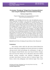 important factor in improving the quality of life of residents in society. The residential space pattern in Babatan Pilang still maintains the brandgang system. The function of this brandgang itself is as a fire breaker to slow down or stop fires. Apart from the two main functions, brandgang indirectly also acts as a connection path between