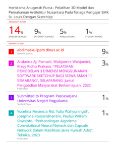 HASIL SIMILARITY-HERISTAMA ANUGERAH PUTRA- PELATIHAN 3D MODEL DAN PEMAHAMAN ARSITEKTUR NUSANTARA.pdf Download (1MB) | Preview |