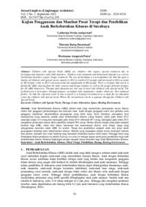 Ambarwati, Catherina Novita and Darmiwati, Theresia Ratna and Putra, Heristama Anugerah (2022) Kajian Penggunaan dan Manfaat Pusat Terapi dan Pendidikan Anak Berkebutuhan Khusus di Surabaya. LingKAr (Lingkungan Arsitektur), 1 (2). pp. 92-103. ISSN (Online) : 2828-9234