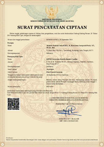 Putra, Heristama Anugerah / LPPM Universitas Katolik Darma Cendika (2024) Panel Lampu Gantung. 000769467 | EC002024197023, 30 September 2024.