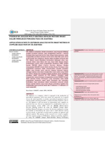 UD. Bahtera merupakan sebuah perusahaan, yang bergerak dibidang produksi peralatan pertanian, yang menggunakan material –material berbahanbaku logam baik itu besi siku sebagai bahan utamanya, untuk menghasilkan peralatan pertanian seperti mesin cabut bulu ayam, mesin pemecah kedelai, dan sebagainya, dimana dalam pemilihan pemasok pada UD. Bahtera masih dijalankan berdasarkan hubungan relasi saja, pemasok dalam suatu bahan dari satu, tetapi tidak disertai dengan pertimbangan seperti sistem pengambilan keputusan (SPK) dengan metode MCDM(Multi Criteria Decision Making). Dengan menggunakan SMART (Simple Multi Attribute Rating Technique)tentu pengambilan keputusan untuk menyelesaikan masalah penentuan pilihan yang bersifat multiobjectivediantara beberapa kriteria, sehingga nantinya akan dapat menghasilkan suatu analisisyang efektifdan efisien. Tujuan dari penelitian adalah membuat sistem pendukung pemilihan untuk pemasok di UD Bahtera, bertujuan untuk prioritas pemasok dengan menggunakan metode SMART (Simple Multi Attribute Rating Technique), yang merupakan suatu teknik pengambilan keputusan untuk dapat membantu dan memberikan kemudahan, bagiperusahaan dalam menentukan pemasok terbaik dengan standarkriteria yang sesuai dengan perusahaan inginkan dan menghasilkan hasil pemasok untuk siku 5 milimeter x 5 milimeter x 6 meter adalah BP