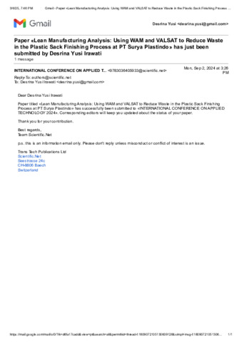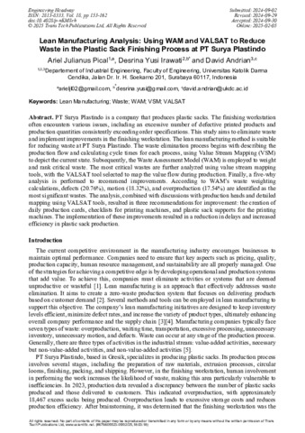 Pical, Ariel Julianus and Irawati, Desrina Yusi and Andrian, David (2025) Lean Manufacturing Analysis: Using WAM and VALSAT to Reduce Waste in the Plastic Sack Finishing Process at PT Surya Plastindo. Engineering Headway, 18. pp. 153-162. ISSN 2813-8333