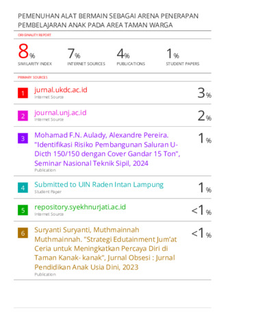 9. HASIL SIMILARITY-PEMENUHAN ALAT BERMAIN SEBAGAI ARENA PENERAPAN PEMBELAJARAN ANAK PADA AREA TAMAN WARGA.pdf Download (3MB) | Preview |