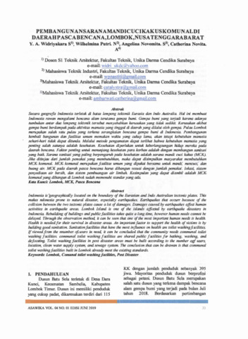 Setiadi, Y.A. Widriyakara and Nastiti, Wilhelmina Putri and Novemita S., Angelina and Novita A., Catherina (2019) PEMBANGUNAN SARANA MANDI CUCI KAKUS KOMUNAL DI DAERAH PASCA BENCANA, LOMBOK, NUSA TENGGARA BARAT. Asawika : Media Sosialisasi Abdimas Widya Karya, 4 (1). pp. 33-39. ISSN 2721-4133