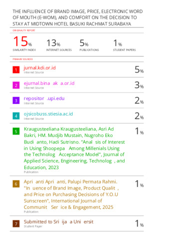 HASIL SIMILARITY-THE INFLUENCE OF BRAND IMAGE, PRICE, ELECTRONIC WORD OF MOUTH (E-WOM).pdf Download (1MB) | Preview |
