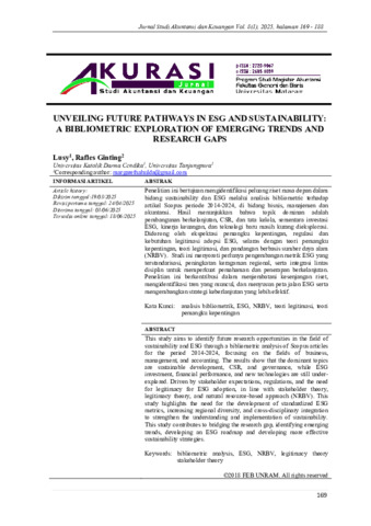 Lusy, Lusy and Ginting, Rafles (2025) UNVEILING FUTURE PATHWAYS IN ESG AND SUSTAINABILITY: A BIBLIOMETRIC EXPLORATION OF EMERGING TRENDS AND RESEARCH GAPS. AKURASI Jurnal Studi Akuntansi dan Keuangan, 8 (1). pp. 169-188. ISSN 2720-9067