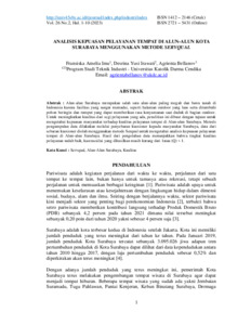 Imu, Fransiska Amelia and Irawati, Desrina Yusi and Bellanov, Agrienta (2023) ANALISIS KEPUASAN PELAYANAN TEMPAT DI ALUN-ALUN KOTA SURABAYA MENGGUNAKAN METODE SERVQUAL. Jurnal Teknik Industri, 26 (2). pp. 1-10. ISSN 2721–5431