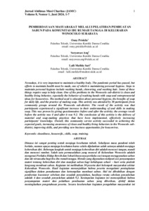 soap. This was proven by giving questionnaires before and after the activity; the average result before the activity was 4 and after it was 9.2. The conclusion of this activity is the delivery of material and soap-making practices that have been implemented, effectively increasing participants' knowledge. Overall, this community service activity succeeded in achieving the expected goals, increasing awareness of clean and healthy living behaviors in the Wonocolo sub district, improving skills, and providing new business opportunities for housewives.