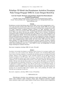 Pembelajaran semakin berkembang pada sekolah SMK, karena untuk mempersiapkan siswa – siswi yang siap pakai di dunia kerja. Oleh karena itu guru pada sekolah SMK St. Louis ingin mengembangkan kompetensi dalam penguasaan program sketchup dalam menghasilkan produk 3D model. Penguasaan kompetensi program sketchup ini dapat diterapkan pada saat pembelajaran siswa-siswi di jurusan DKV. Pengabdian ini dijalankan melalui sebuah pelatihan secara offline yang diikuti oleh guru-guru pengajar SMK St. Louis di Surabaya. Pembahasan menunjukkan bahwa kompetensi penguasaan para guru SMK St. Louis yaitu menghasilkan 3D model menggunakan blender. Hal itu telah menyebabkan munculnya pemikiran bahwa untuk lebih mempermudah dalam menghasilkan 3D model yaitu menggunakan sketchup. Pemahaman mengenai Arsitektur Nusantara merupakan topik yang dapat dikembangkan oleh guru SMK St. Louis, dalam pengaplikasiannya dalam produk atau karya desain. Oleh karena ide itu maka dalam pelatihan 3D model ditambahkan penjelasan mengenai arsitektur Nusantara. Pelatihan yang diikuti oleh guru SMK St. Louis menyatakan menjadi memiliki pengetahuan atau alternatif materi dalam pembelajaran pada siswa – siswi SMK St. Louis, saat menghasilkan 3D model dengan sketchup dan Arsitektur Nusantara.