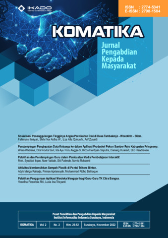 Riti, Yosefina Finsensia and Trisyanti, Lucia Ina (2022) Pelatihan Penggunaan Aplikasi Merdeka Mengajar bagi Guru- Guru TK Citra Bangsa. KOMATIKA, 2 (2). pp. 48-52. ISSN 2774-5341