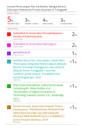 HASIL SIMILARITY-LILIS NURHAYATI-INOVASI PERANCANGAN ALAT IRAT BAMBU.pdf Download (2MB) | Preview |