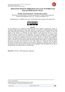 Jurnal KEPASTIAN HUKUM TERHADAP GUGATAN WANPRESTASI DALAM PERJANJIAN LISAN.pdf Download (366kB) | Preview |
