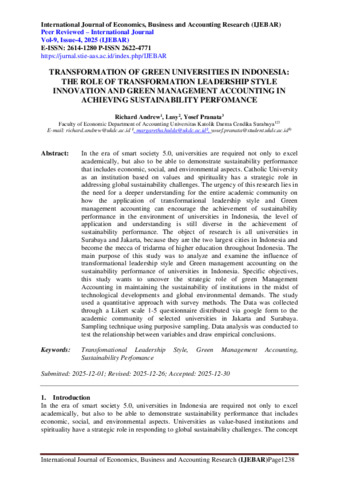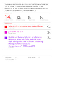 Andrew, Richard and Lusy, Lusy and Pranata, Yosef (2026) Transformation of Green Universities In Indonesia: The Role of Transformation Leadership Style Innovation And Green Management Accounting In Achieving Sustainability Performance. International Journal of Economics, Business and Accounting Research (IJEBAR), 9 (4). pp. 1238-1246. ISSN 2614-1280