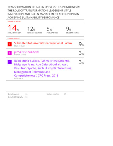 | Uncontrolled Keywords: | Transfomational Leadership Style, Green Management Accounting, Sustainability Perfomance |