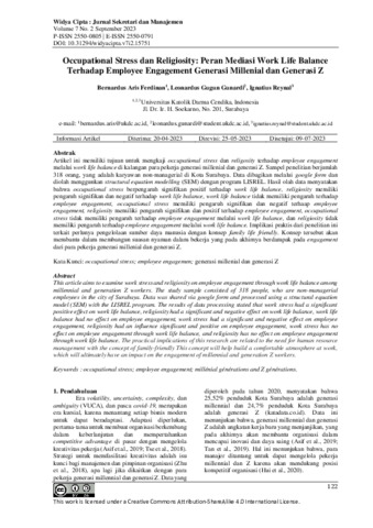 Text (Occupational Stress dan Religiosity: Peran Mediasi Work Life Balance Terhadap Employee Engagement Generasi Millenial dan Generasi Z)
