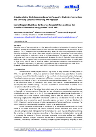 HASIL SIMILARITY-BERNARDUS ARIS FERDINAN-SELECTION OF NEW STUDY PROGRAMS BASED ON PROSPECTIVE STUDENTS EXPECTATIONS.pdf Download (2MB) | Preview |