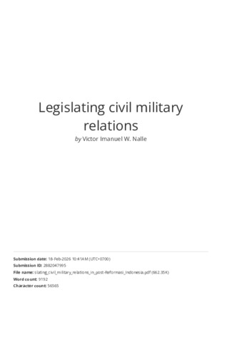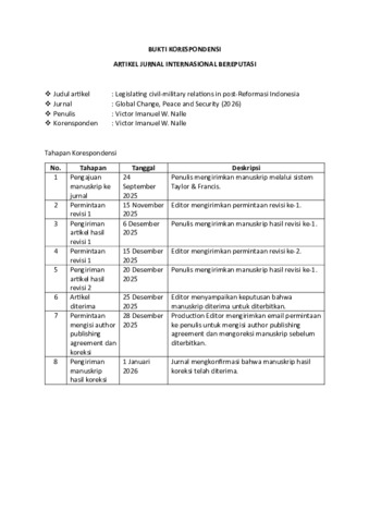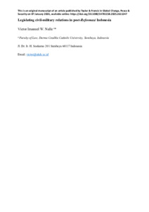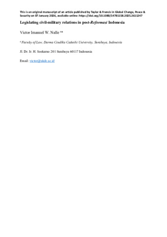 Nalle, Victor Imanuel W. (2026) Legislating civil–military relations in post-Reformasi Indonesia. Global Change, Peace & Security, Latest (Articl). pp. 1-36. ISSN 1478-1158